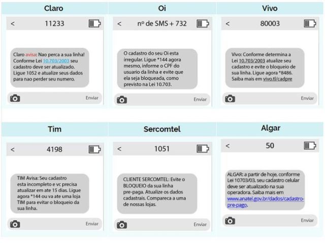 Para garantir que a mensagem de solicitação de recadastramento recebido foi efetivada e encaminhada pela prestadora contratada, o consumidor pode conferir os números utilizados pelas operadoras para envio destas mensagens.