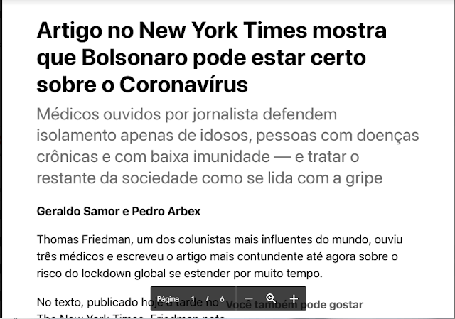 RS Notícias: Artigo no New York Times mostra que Bolsonaro pode estar certo sobre o Coronavírus Lucio Borges Sem categoria 26 de março de 2020 1 minuto https://drive.google.com/open?id=1iB8h2eHupynKCMEm6Xk0c7fJfISOp1dD Fonte: RS Notícias: Artigo no New York Times mostra que Bolsonaro pode estar certo sobre o Coronavírus Compartilhe isso: Compartilhar no X(abre em nova janela) 18+ Compartilhar no Facebook(abre em nova janela) Facebook Curtir Carregando... Relacionado Publicado por Lucio Borges Editor do site RS Notícias. Ver todos os posts de Lucio Borges Publicado 26 de março de 2020