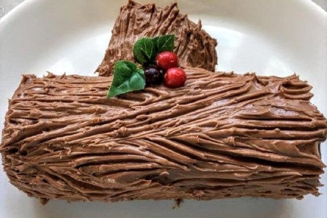 Para enfeitar faça uma pasta com 2 colheres (sopa) de manteiga e 1 colher (sopa) de chocolate e espalhe por cima. Após, passe o garfo para parecer ranhuras como um tronco.
