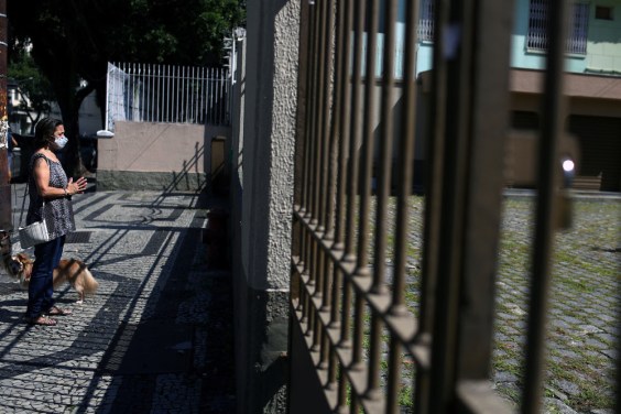 Mulher reza em frente a igreja no Rio: Witzel pode instituir lockdown | REUTERS/Pilar Olivares