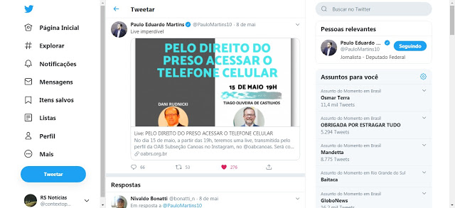 RS Notícias: Pelo direito do preso acessar o telefone celular Lucio Borges Sem categoria 9 de maio de 20209 de maio de 2020 1 minuto Fonte: https://twitter.com/PauloMartins10/status/1258791135780184065?cn=ZmxleGlibGVfcmVjcw%3D%3D&refsrc=email Fonte: RS Notícias: Pelo direito do preso acessar o telefone celular Compartilhe isso: Compartilhar no X(abre em nova janela) 18+ Compartilhar no Facebook(abre em nova janela) Facebook Curtir Carregando... Relacionado Publicado por Lucio Borges Editor do site RS Notícias. Ver todos os posts de Lucio Borges Publicado 9 de maio de 20209 de maio de 2020