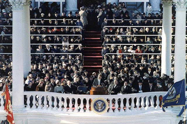 Depois de vencer a eleição em 1960, o Presidente John F. Kennedy, profere seu Discurso Inaugural em Washington, Distrito de Columbia, em 20 de janeiro de 1961.