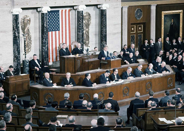 O Presidente John F. Kennedy se dirige ao Congresso em Sessão Conjunta para seu primeiro estado de The Union Address em Washington, em 31 de janeiro de 1961.