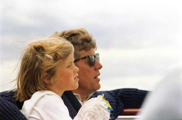 O presidente Kennedy leva sua filha Caroline para dar uma volta no Honey Fitz, em Hyannis Port, em agosto de 1963.