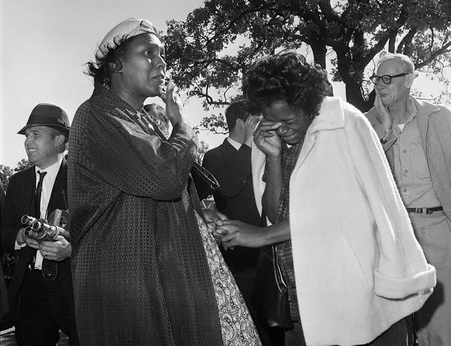 Mulheres choraram do lado de fora do Parkland Hospital ao saber que o Presidente John F. Kennedy morreu de um ferimento a bala enquanto andava em uma carreata em Dallas, em 22 de novembro de 1963.