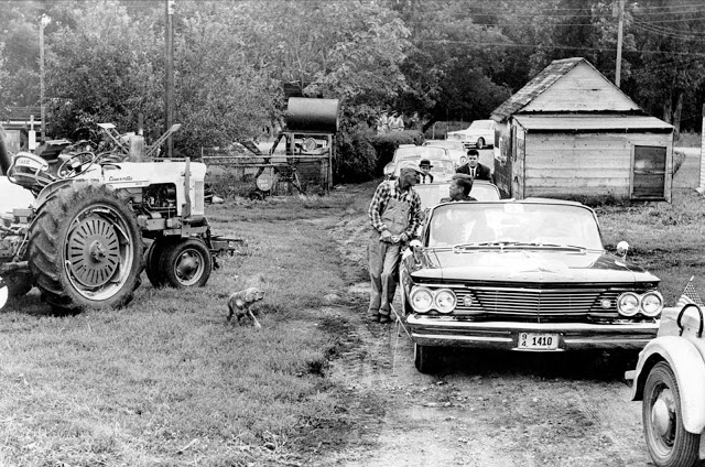 O candidato democrata à Presidência, senador John F. Kennedy, no banco traseiro do conversível Pontiac, conversa com o fazendeiro James Cox durante sua visita à fazenda em Fort Dodge, Iowa, em 22 de setembro de 1960.
