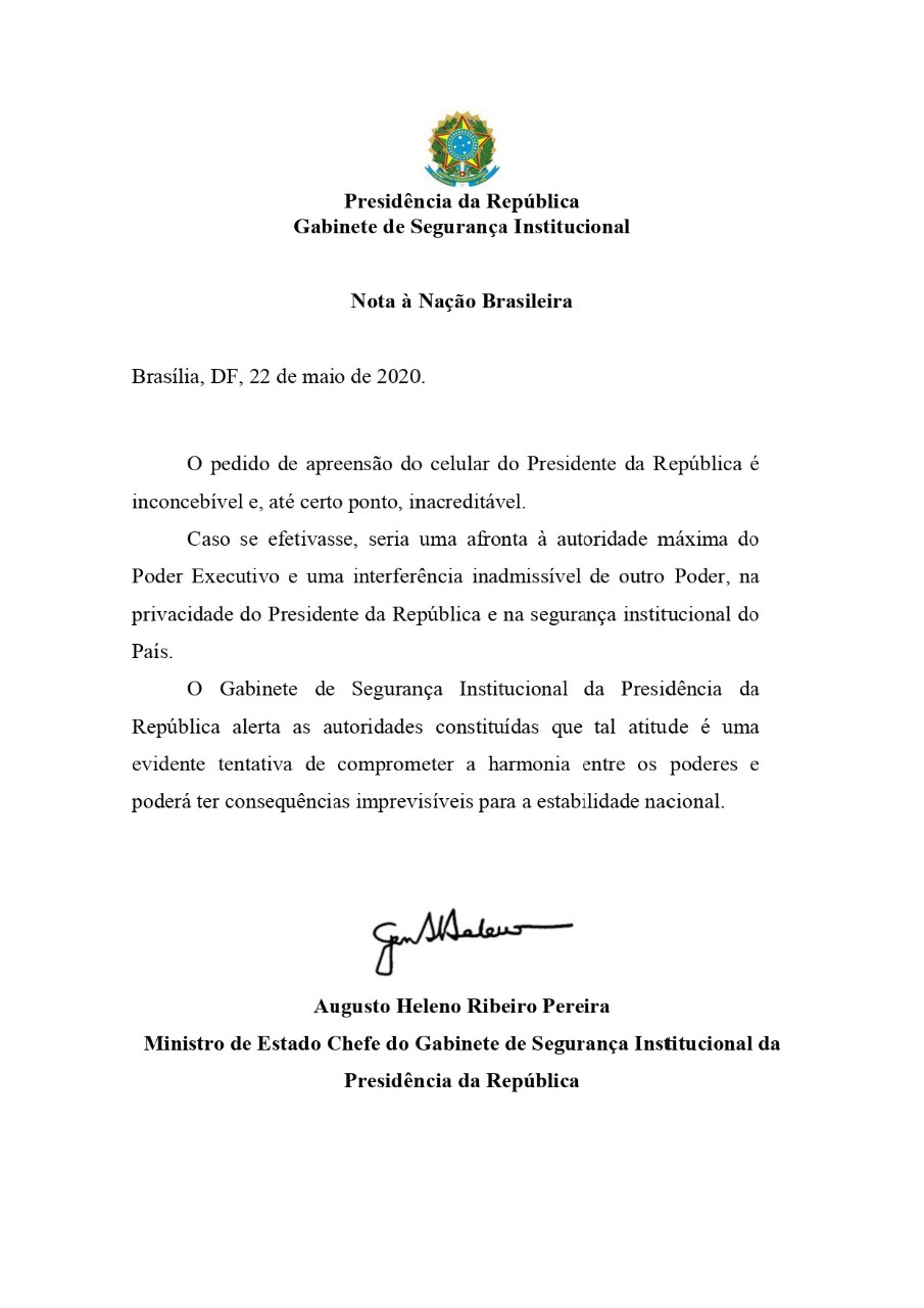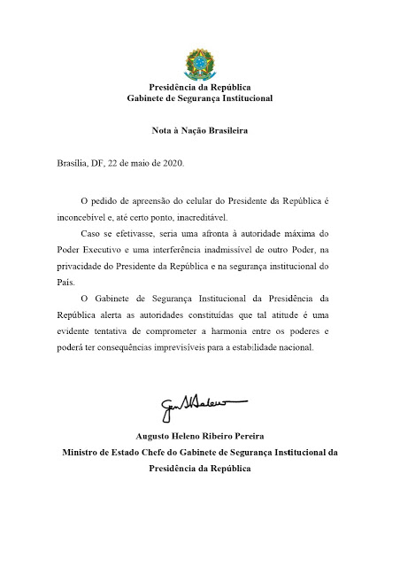 RS Notícias: Gen Heleno – Nota à Nação Brasileira Lucio Borges Sem categoria 23 de maio de 202023 de maio de 2020 1 minuto Fonte: RS Notícias: Gen Heleno – Nota à Nação Brasileira Compartilhe isso: Compartilhar no X(abre em nova janela) 18+ Compartilhar no Facebook(abre em nova janela) Facebook Curtir Carregando... Relacionado Publicado por Lucio Borges Editor do site RS Notícias. Ver todos os posts de Lucio Borges Publicado 23 de maio de 202023 de maio de 2020