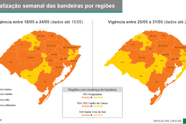Fonte: RS Notícias: Três regiões do RS passam de risco médio para baixo de contágio de Covid-19