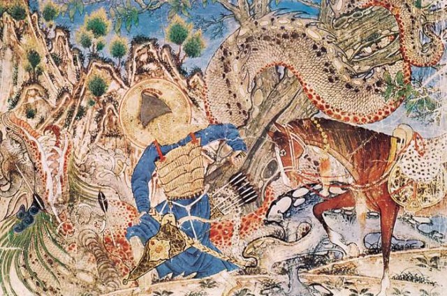 Bahrum Gur matando um dragão, ilustração do Shāh-nāmeh , 1320-60; no Museu de Arte de Cleveland.Cortesia do Museu de Arte de Cleveland, Ohio, Grace Rainey Rogers Fund
