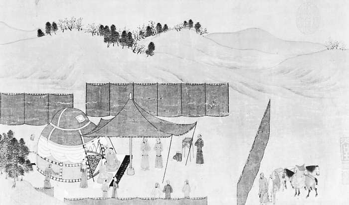Cai WenjiUm acampamento mongol, detalhe do pergaminho Cai Wenji, um pergaminho chinês da dinastia Song Nan (do sul).Cortesia de Asia Society Galleries, Nova York