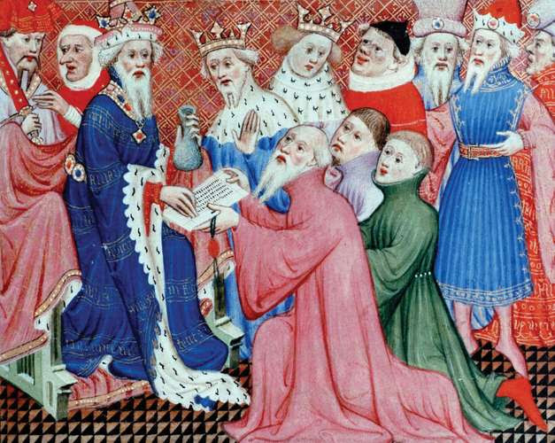 Marco Polo; Kublai KhanMarco Polo, seu tio e seu pai, apresentando a carta do papa na corte de Kublai Khan, detalhe de um manuscrito iluminado; na Biblioteca Bodleian, Oxford, Inglaterra.© Photos.com/Jupiterimages