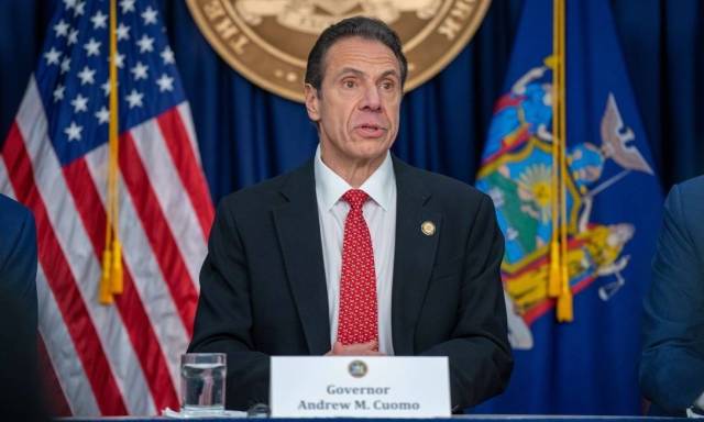 O governador do estado de Nova York, Andrew Cuomo, durante coletiva sobre o combate ao coronavírus.| Foto: David Dee Delgado / AFP