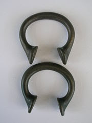 Dois Okillasho Manillas ligeiramente diferentes , usados na compra de escravos