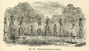 Transporte de escravos na África, a partir de uma gravura do século XIX