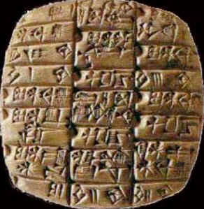As mais velhas prateleiras foram descobertas no templo de Inanna em Uruk, datam de cerca de 3300 aC. Estes comprimidos são certamente escritos em sumério.