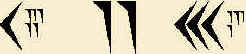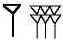 O símbolo para o homem é uma representação estilizado de um homem visto de perfil. A mulher é representada por um púbico estilizado. A montanha é simbolizado por três elipses dispostas em uma montanha. E o escravo veio de além das montanhas, é simbolizado pela combinação de símbolos da mulher e da montanha.