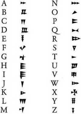 O alfabeto cuneiforme utilizado para escrever nossas prateleiras: