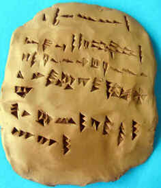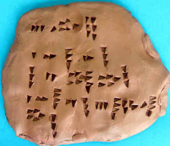 A argila, disponível em abundância na região, emergiu como o material de escrita principal para a totalidade do período de utilização de escrita cuneiforme, embora tenha sido também escrito em placas de pedra e usado madeira ou marfim coberto com cera.