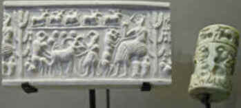 Vedação do cilindro (direita) e sua marca. meio do terceiro milênio aC.Museu do Louvre, de 2007.