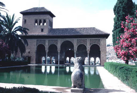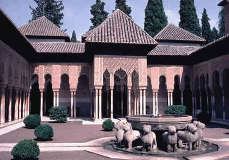 Exemplo disso é o Alhambra, em Granada. De planta quadrangular e cercado de muralhas sólidas, o palácio tinha aspecto de fortaleza, embora se comunicasse com a mesquita por meio de pátios e jardins. O aposento mais importante era o diwan ou sala do trono.