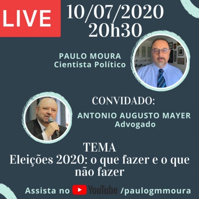 Não percam a live de Paulo Moura e Antonio Augusto Mayer, amanhã , dia 10/07 . http://youtube/paulogmmoura