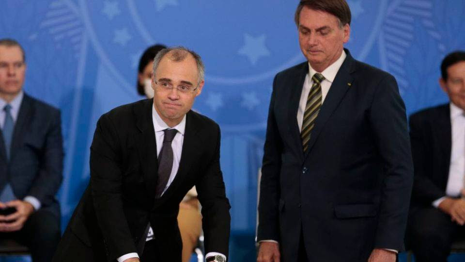 O novo ministro da Justiça e Segurança Pública, André Mendonça, e o presidente da República, Jair Bolsonaro, durante a solenidade de posse no Palácio do Planalto.| Foto: Marcello Casal Jr/Agência Brasil