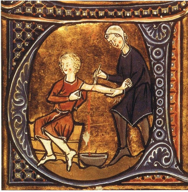 Médico deixando sangue de um paciente. Atribuído a Aldobrandino de Siena: Li Livres dou Santé. França, final do século XIII. / Biblioteca Britânica, Creative Commons
