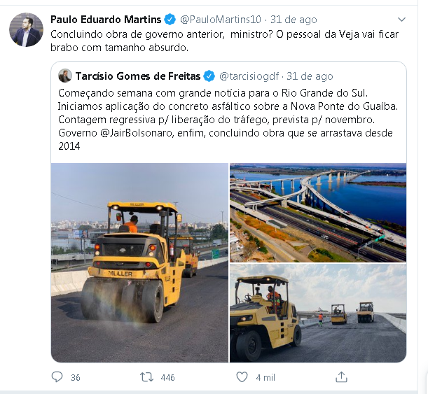 RS Notícias: A Nova Ponte do Guaíba está sendo finalizada Lucio Borges Sem categoria 1 de setembro de 20201 de setembro de 2020 1 minuto Fonte: https://twitter.com/PauloMartins10/status/1300435814179115009?cn=ZmxleGlibGVfcmVjcw%3D%3D&refsrc=email Fonte: RS Notícias: A Nova Ponte do Guaíba está sendo finalizada Compartilhe isso: Compartilhar no X(abre em nova janela) 18+ Compartilhar no Facebook(abre em nova janela) Facebook Curtir Carregando... Relacionado Publicado por Lucio Borges Editor do site RS Notícias. Ver todos os posts de Lucio Borges Publicado 1 de setembro de 20201 de setembro de 2020