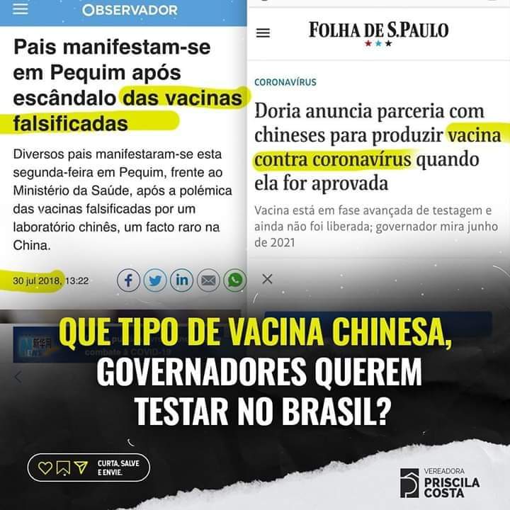 Após o anúncio da parceria do Governo de São Paulo com o Instituto Butantã e a empresa chinesa Sinovac Biotech para a realização da terceira fase de testes da chamada Coronavac (vacina feita pela empresa chinesa), que deverá ser testada em 9 mil brasileiros, alguns grupos começaram a tecer ataques e a compartilhar fake news sobre produção de vacinas chinesas.