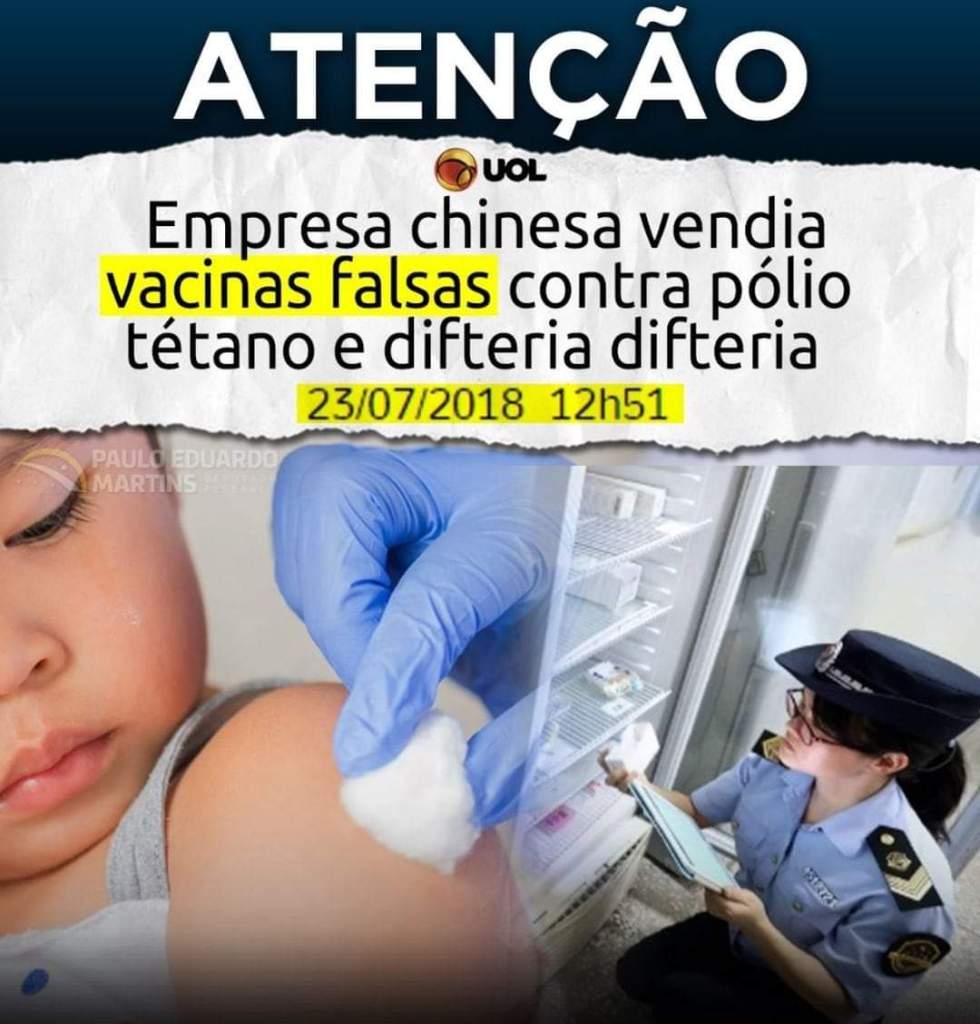 A COAR analisou a veracidade dessas postagens e concluiu que a notícia se referindo ao portal UOL é verídica. Inclusive, a matéria consta com o título da imagem, a data e o horário: Empresa chinesa vendia vacinas falsas contra pólio, tétano e difteria. Mas além do Uol, o G1 e o site Minha Vida publicaram a informação na época. Em primeira instância convém citar que as notícias relatadas sobre a falsificação das vacinas chinesas são datadas de 2018.