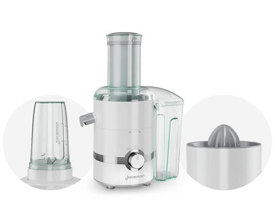 A evolução que você já conhece ainda mais inovadora e versátil! Juiceman é o especialista em sucos e vitaminas que lhe entrega bebidas saborosas e 100% naturais, na hora, prontas em segundos e do jeito que você mais gosta! Intuitivo e sempre à mão, ele reúne 3 formas de você aproveitar o melhor dos alimentos e servir à sua família uma alimentação mais saudável, rica em nutrientes, fibras e energia. Ideal para frutas e legumes mais duros ou levemente macios, o clássico módulo Juicer prepara sucos frescos com alimentos inteiros, sem bagunça, e ainda extrai o suco de vegetais e folhas para enriquecer a sua alimentação sem abrir mão do sabor! E olha só, você pode aproveitar a polpa para criar uma variedade de receitas, como bolos, pães, geleias e tortas irresistíveis! Para alimentar o corpo com vitaminas consistentes ou sucos mais encorpados, você conta também com o módulo Blender, que prepara uma infinidade de combinações com iogurte, leite, frutas cremosas, como mamão, banana, abacate e manga, e frutas que contenham alto teor de água, como melancia e melão! O melhor é que seu recipiente se transforma em um copo superprático, para você levar bebidas mais saudáveis aonde for! Fora isso, ele processa grãos, sementes e oleaginosas para uma alimentação rica em nutrientes… E também prepara molhos, marinadas, vinagretes e farinhas integrais na consistência ideal! Que tal uma limonada deliciosa ou um suco de laranja e grapefruit fresquinho feito na hora? Com o módulo Expremedor de Cítricos, Juiceman extrai o máximo de suco, em segundos, para você saborear uma deliciosa combinação de saúde e energia, rica em Vitamina C, sempre! Graças à combinação de seu motor de alta rotação com 800 Watts de potência e exclusivo sistema de microextração… Juiceman aproveita o máximo de sabor e saúde dos alimentos macios e até dos mais duros! Deixe de lado as comidas industrializadas e ganhe mais saúde para você e sua família com alimentos frescos, puros e naturais, ricos em vitaminas, eneriga, nutrientes e fibras, para o seu corpo ganhar mais disposição e força todos os dias! Juiceman é uma exclusividade Polishop!