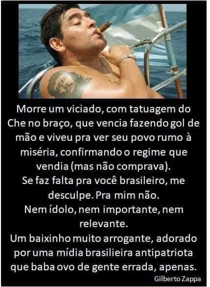 RS Notícias: Maradona, um viciado arrogante Lucio Borges Sem categoria 27 de novembro de 202027 de novembro de 2020 1 minuto Fonte: RS Notícias: Maradona, um viciado arrogante Compartilhe isso: Compartilhar no X(abre em nova janela) 18+ Compartilhar no Facebook(abre em nova janela) Facebook Curtir Carregando... Relacionado Publicado por Lucio Borges Editor do site RS Notícias. Ver todos os posts de Lucio Borges Publicado 27 de novembro de 202027 de novembro de 2020