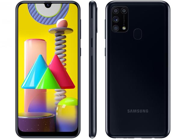 Tenha um smartphone diferenciado em suas mãos! O Samsung Galaxy M31 produz fotos de nível profissional, pois oferece um conjunto de 04 câmeras na traseira, permitindo que você capte as melhores fotografias em qualquer situação. Faça fotos criativas e compartilhe nas redes sociais, através da câmera de selfie de 32MP. Sua tela de 6,4″ Super AMOLED e resolução FHD+ oferecem a melhor experiência para você ver seus conteúdos de maneira mais imersiva e com visual impressionante. Tem 128GB de armazenamento interno, ele é ideal para guardar suas fotos, músicas ou vídeos! E se mesmo assim achar pouco, você pode usar um cartão MicroSD de até 512GB para aumentar essa capacidade. Este produto tem um processador Octa-Core e 6GB de memória RAM, e assim potencializar seus jogos favoritos. A cor preta destaca o design renovado do smartphone, garantindo maior elegância em suas mãos. Fique sempre conectado com a tecnologia 4G em um aparelho dual chip! Tenha bateria para o dia todo, afinal estamos falando de 6000mAh, além de contar com carregamento rápido de 15W. Esse celular entrega proteção personalizada com leitor de digital na tela, deixando seus conteúdos e dados confidenciais protegidos.