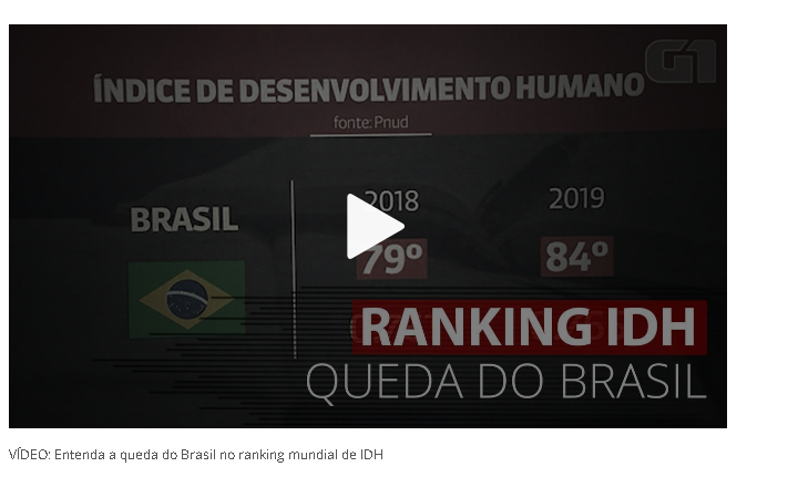País agora ocupa posição 84 entre 189 países analisados em termos de Desenvolvimento Humano, apesar de índice ter tido uma leve melhora. Média brasileira é menor do que a de Chile, Argentina, Uruguai e Colômbia; ranking é liderado pela Noruega.