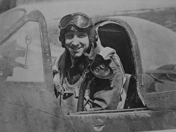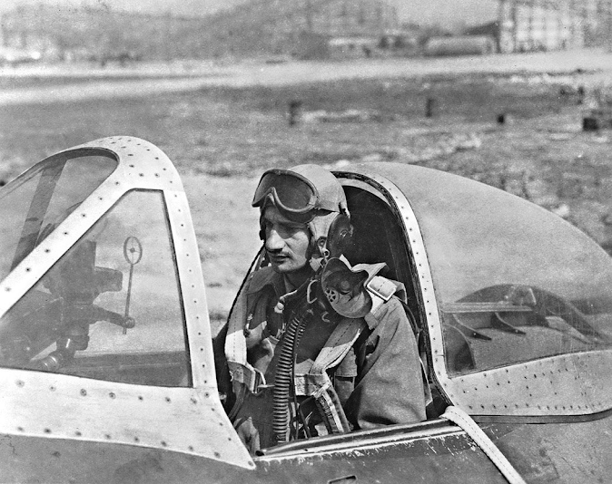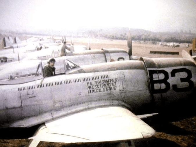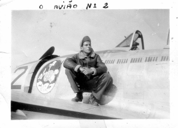 ![]() Acima: O então Tenente José Rebelo Meira Vasconcelos no cockpit da seu Repúblic P-47 Thunderbolt ACERVO BRIGADEIRO MEIRA