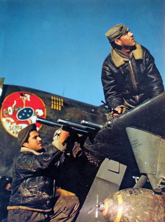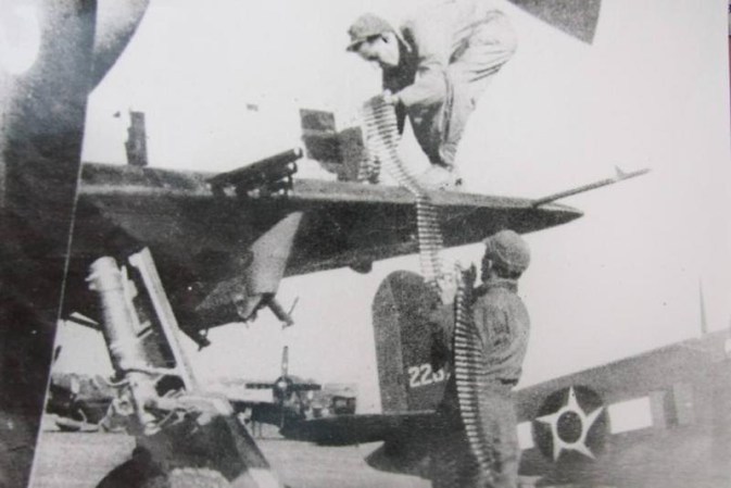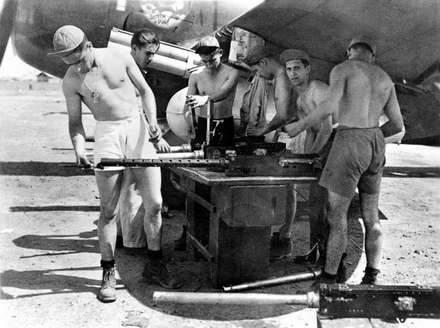 ![]() Acima: Pessoal de terra reabastece metralhadora utilizada nos P-47 da Força Aérea Brasileira na Itália REPRODUÇÃO / HERÓIS DE LOS CIELOS