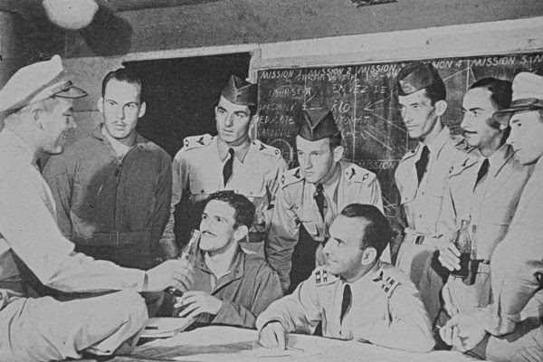 ![]() Acima: Pilotos do 1º Grupo de Aviação de Caça da Itália quando se preparavam para retornar ao Brasil. O Brigadeiro Rui Moreira Lima está sentado (é o segundo da direita para a esquerda) e o Brigadeiro José Rebelo Meira Vasconcelos também está sentado (é o sétimo da direita para a esquerda). Na volta ao Brasil, os pilotos do grupo instituíram a aviação de caça no Brasil, na Base Aérea de Santa Cruz ACERVO BRIGADEIRO MEIRA