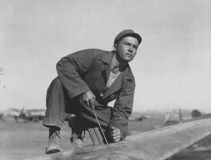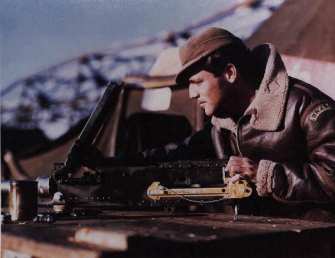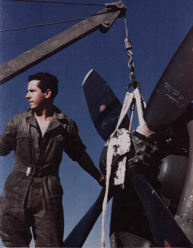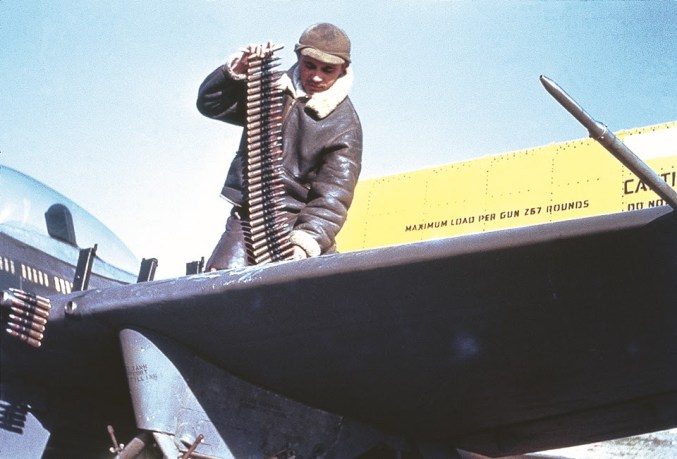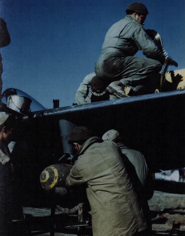 Abraixo: Mecânico da FAB fornecendo as metralhadoras P-47 Browning da 1ª GAvCa.