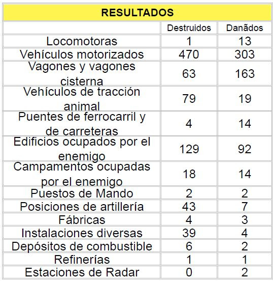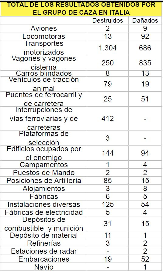 ![]() ![]() Na “Ofensiva de Primavera” o Grupo Brasileiro de Caça obteve o seguinte resultado: