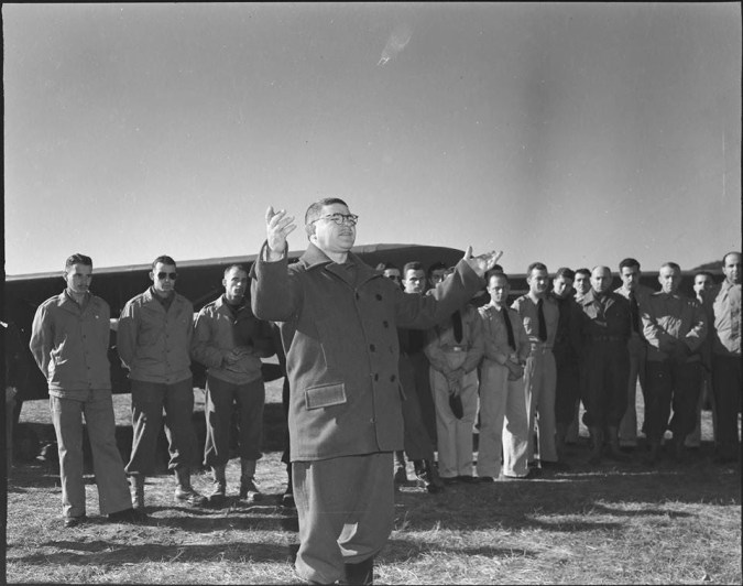![]() Abaixo: FAB Encontro de oficiais da Força Aérea do 1º Grupo de Caça, no acampamento Pisa. Tenente Perdigão, Tenente-Coronel Nero Moura, Capitão Pessoa Ramos, Tenente Rocha, Tenente Tormim, Tenente Horácio. ![]() ![]() ![]() ![]() ![]() Abaixo: Major Walter Maciey, oficial de ligação dos Estados Unidos com o capitão. Francisco Dutra Sabroza do Primeiro Grupo de Caça da FAB …