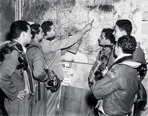 ![]() Em 31 de outubro de 1944, os pilotos brasileiros começaram a participar de missões de guerra, voando em aviões próprios, mas fazendo parte de esquadrões norte-americanos, a fim de se familiarizarem com a realidade da guerra. No dia 6 de novembro, tivemos nossa primeira derrota em combate: o 2º Tenente Aviador Cordeiro e Silva, em missão de guerra, foi morto por artilharia antiaérea na região de Bolonha.