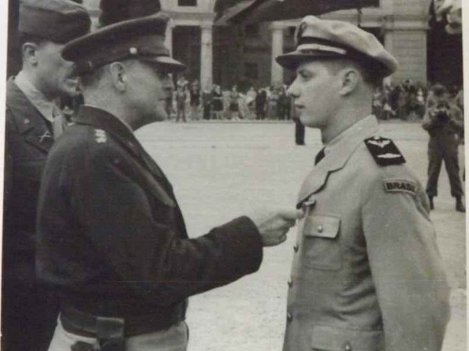![]() Abaixo:Tenente-aviador Arnaldo Vissoto sendo condecorado por um general norte-americano