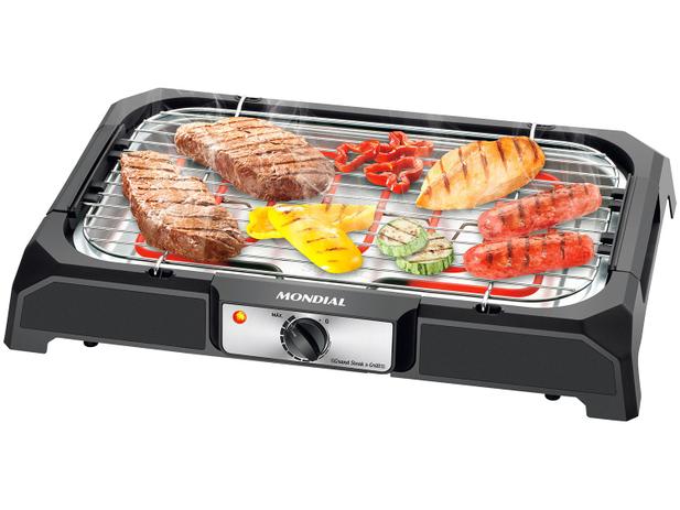 Churrasqueira elétrica Grand Steak & Grill da Mondial, agora fazer churrasco ficou mais fácil, prático e incrivelmente livre da fumaça. Uma churrasqueira desenvolvida para você e sua família desfrutar de alimentos mais saudáveis e saborosos. Ela tem controle de temperatura, alças antitérmicas, altura da grelha ajustável, grelha e bandeja removível para facilitar na hora da limpeza, bandeja que permite colocar água e evita que as partículas de gordura se queimem e libere fumaça, lâmpada-piloto indicando o funcionamento do aparelho. Você fará carne, frango, espetinhos, linguiça e muito mais. Mondial, sua melhor escolha!