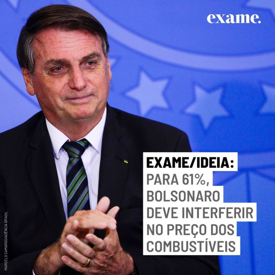A Petrobras já subiu quatro vezes o preço da gasolina em 2021 e a alta acumulada do combustível nas refinarias chega a quase 35%. A escalada do preços gerou uma crise no governo que levou à demissão do atual presidente da Petrobras, Roberto Castello Branco. Para 61% dos brasileiros, o presidente Jair Bolsonaro deve interferir sim para manter o valor dos combustíveis a níveis mais baixos. Já 12% entendem que não deve ocorrer intervenção, e 28% nem concordam nem discordam com a possibilidade. Os dados são da mais recente pesquisa EXAME/IDEIA, projeto que une Exame Invest Pro, braço de análise de investimentos da EXAME, e o IDEIA, instituto de pesquisa especializado em opinião pública. O levantamento ouviu 1.200 pessoas entre os dias 22 e 24 de fevereiro. A margem de erro é de três pontos percentuais para mais ou para menos. Clique aqui para ler o relatório completo.
