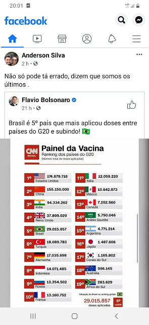 RS Notícias: Brasil é o quinto país que mais vacinou Lucio Borges Sem categoria 11 de abril de 202111 de abril de 2021 1 minuto https://www.cnnbrasil.com.br/saude/2021/04/09/brasil-e-o-5-pais-que-mais-aplicou-doses-de-vacina-em-numeros-absolutos Governo arrecada R$ 216 milhões com licitação de Porto de Pelotas e outras cinco áreas Funeral do príncipe Philip já estava organizado e ocorre dia 17 Rompido com a família, Harry deve ir ao velório do avô sem Meghan ESTÁ FALTANDO TESTOSTERONA NO CONGRESSO – Percival Puggina Em Windsor e Buckingham, britânicos choram pela morte do príncipe Philip Lobby contra energia solar ameaça 245 mil empregos e R$12 bilhões em impostos Forno Elétrico Philco 3 em 1 PFE09V Forno, Cafeteira e Grill Vale do Taquari terá estátua do Cristo maior que a do Rio de Janeiro Em meio a empurrões e gritos, argentinos “lutam” por comida Fux marca julgamento sobre instalação da “CPI da Covid” para quarta-feira Fonte: RS Notícias: Brasil é o quinto país que mais vacinou Compartilhe isso: Compartilhar no X(abre em nova janela) 18+ Compartilhar no Facebook(abre em nova janela) Facebook Curtir Carregando... Relacionado Publicado por Lucio Borges Editor do site RS Notícias. Ver todos os posts de Lucio Borges Publicado 11 de abril de 202111 de abril de 2021