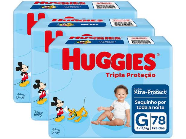 Fonte: RS Notícias: Kit Fraldas Huggies Tripla Proteção Tam. G – 9 a 12,5kg 3 Pacotes com 78 Unidades Cada