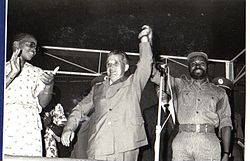 Graça Machel, Nicolae Ceauşescu e Samora Machel, em Maputo, Moçambique, em 1979.