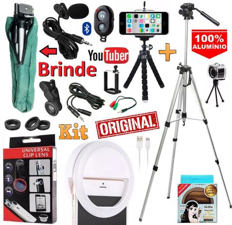 Kit Profissional,Completo,de Qualidade.São 12 Itens Com uma Bolsa Para Transporte do Tripé todo em alumínio e com Nível Para Melhor Qualidade de seus Vídeos e Fotos.