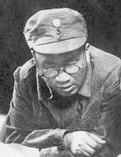 Comandante-chefe do Oitavo Exército de Rota Lin Biao usando um uniforme da 115.ª Divisão do Exército Nacional Revolucionário Chinês