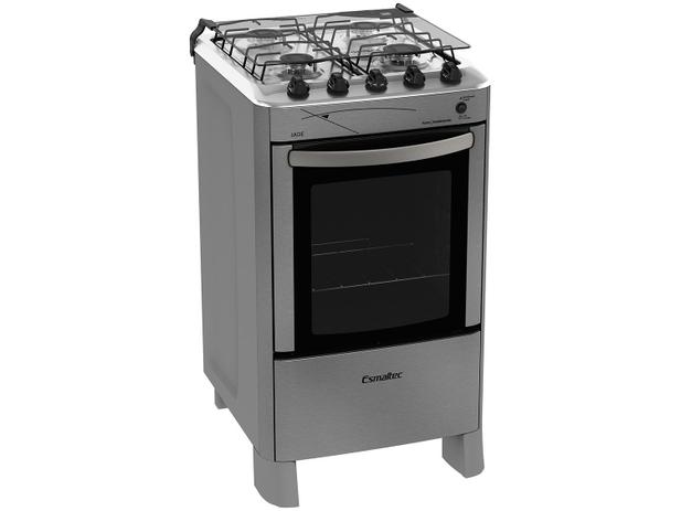 Fogão Jade 4 Bocas da Esmaltec. Com este super fogão você vai ter muito mais segurança e comodidade no dia a dia. Possui forno autolimpante, entrada para luz no forno (lâmpada não inclusa), além de botões removíveis facilitando a limpeza do produto. Tem ainda acendimento total automático e pés altos.